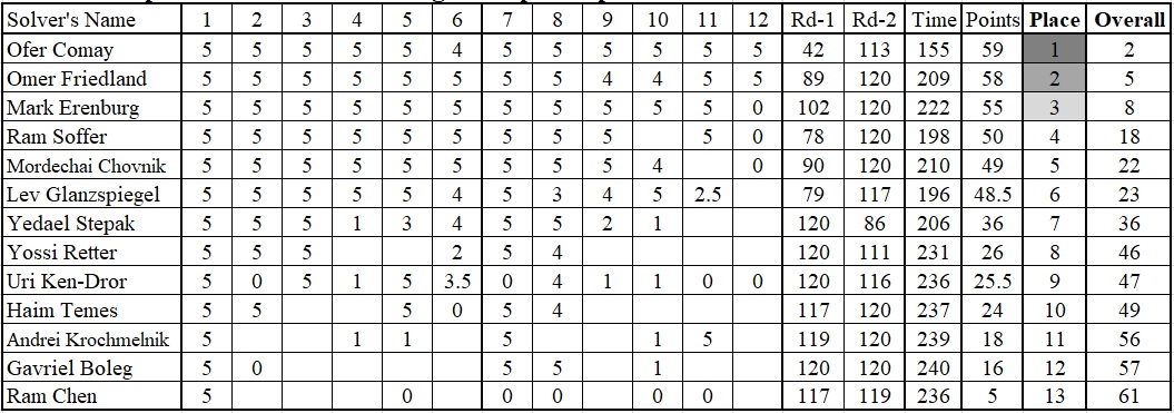 הכין את התחרות: פז עינת. מנהל התחרות: יבגני בורד.